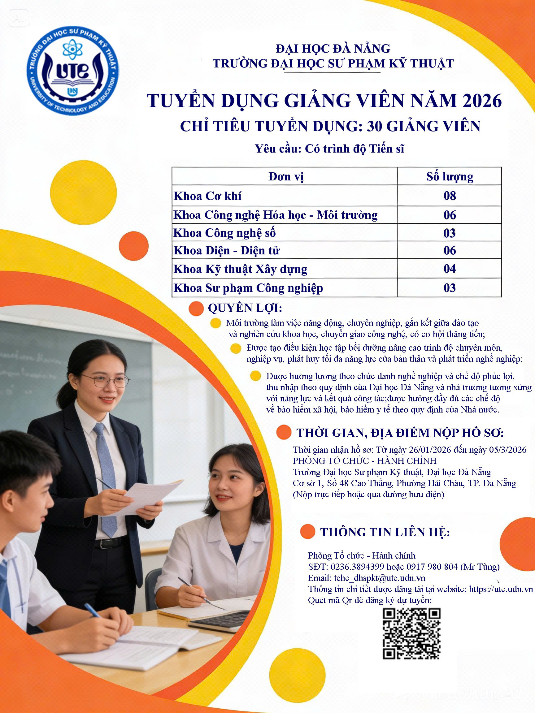 Trường Đại học Sư phạm Kỹ thuật - Đại học Đà Nẵng tuyển dụng